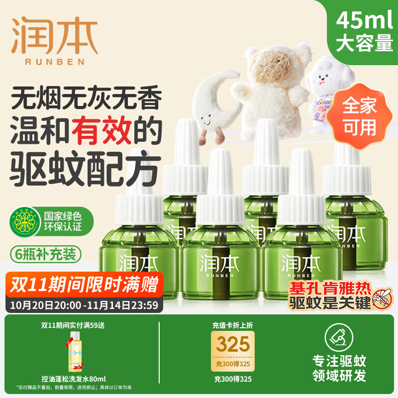 润本(RUNBEN)蚊香液电蚊香液180晚45ml×6瓶补充装防蚊驱蚊水