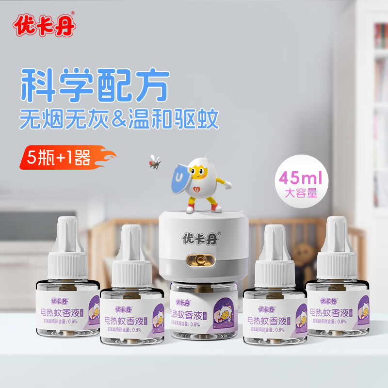 优卡丹基孔肯雅热 电蚊香液驱蚊液灭蚊大容量45mlx5瓶+1器防蚊 全家适用