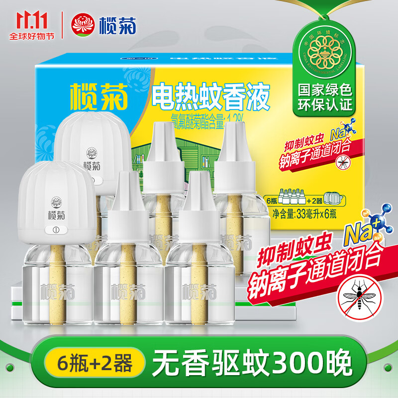 榄菊电蚊香液6瓶+2器 无香型菊之语热门商品电热蚊香液电蚊香驱蚊液