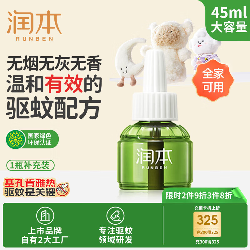 润本(RUNBEN)防蚊电蚊香液驱蚊液30晚45mlx1瓶无香型经典款