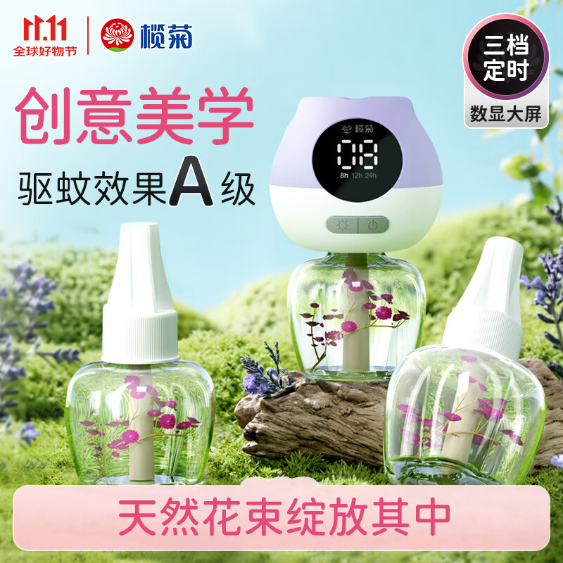 榄菊花艺电蚊香液45mL*3瓶+智能定时器 电蚊香驱蚊液防蚊电热蚊香液