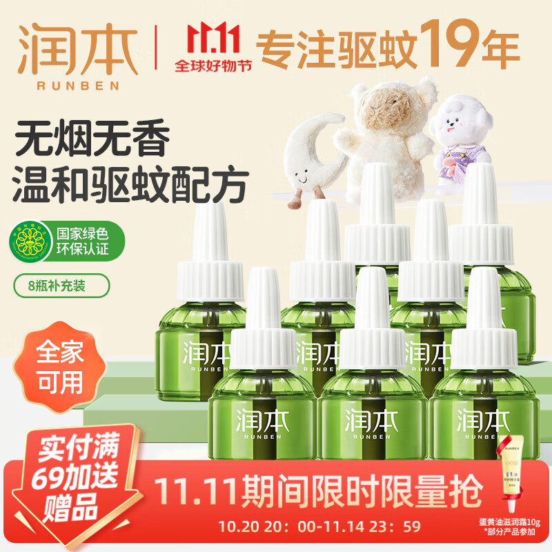 润本(RUNBEN)电热蚊香液无味无灰定时驱蚊器电蚊香防蚊液补充液无香型 45ml 8瓶 无器【热销爆款】补充装
