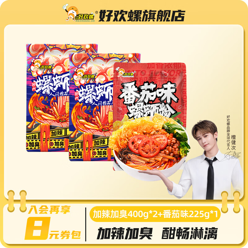 好欢螺(HAOHUANLUO)螺蛳粉经典原味螺丝粉袋装方便速食酸辣粉丝广西柳州米粉螺狮粉 加辣400g*2袋+小龙虾225g*1袋