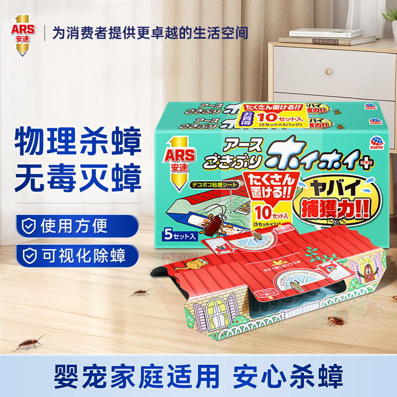 安速蟑螂屋10枚日本原装进口蟑螂药蟑螂粘蟑螂盒灭蟑厨房室内婴宠无忧