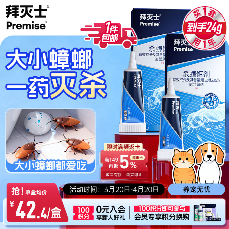 拜灭士拜耳蟑螂药杀蟑胶饵5g一窝室内全窝端虫卵双杀宠物友好热门商品