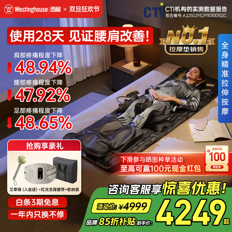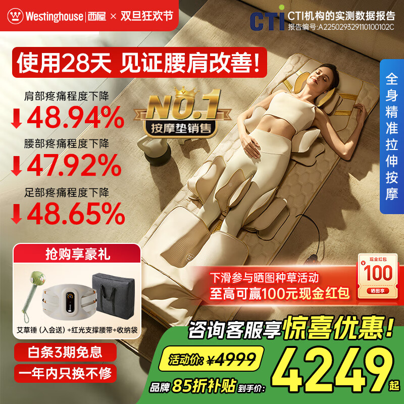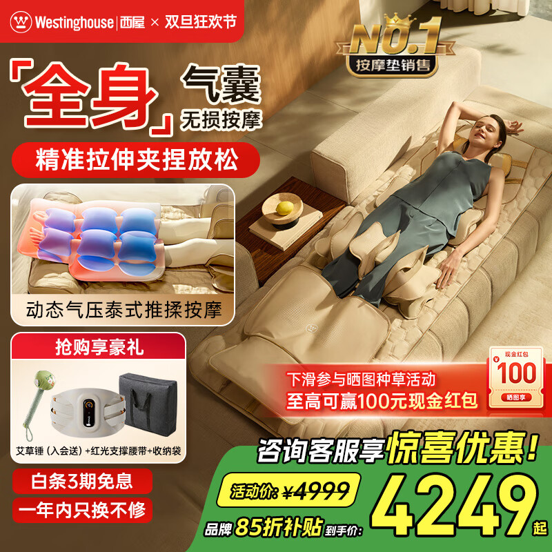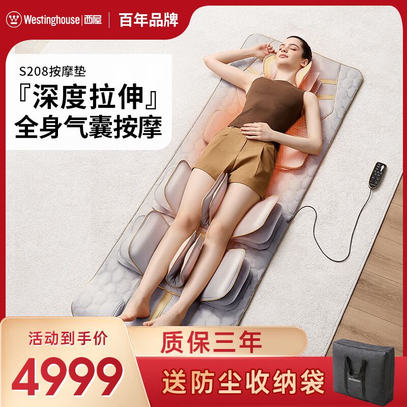 西屋(Westinghouse)S208/208pro/S150按摩垫全身躺垫椅床上折叠按摩椅家用迷你颈椎腰部背部按摩仪送父母亲长辈礼物 S208【腰腿气囊可调,高矮胖瘦都能用】