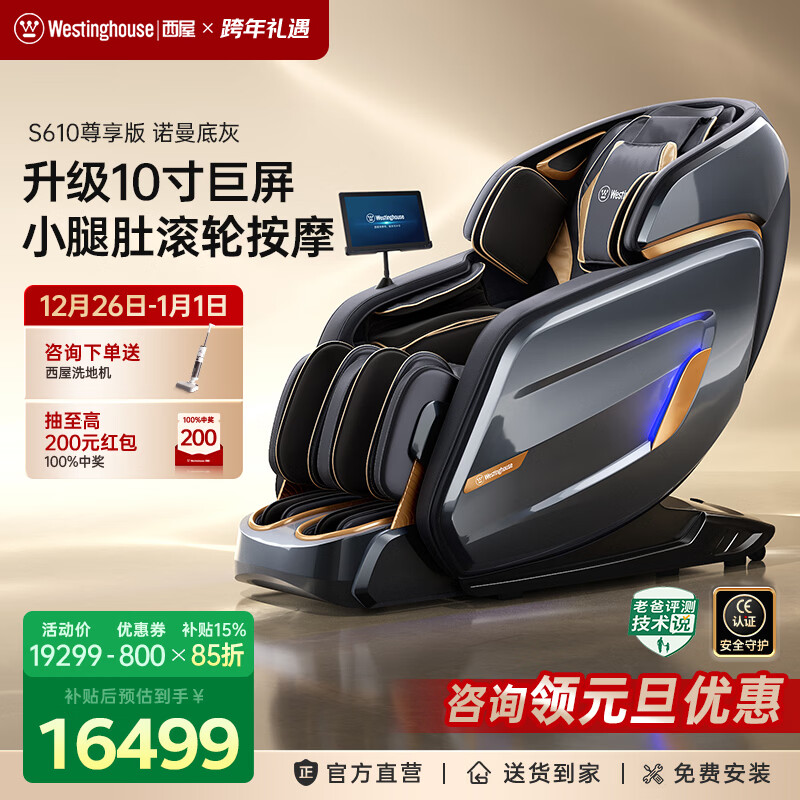 西屋(Westinghouse) 【CE认证】 S610家用智能电动按摩椅全身揉捏太空舱2025十大按摩椅品牌摇摇椅S620升级款送老人 S610奢享版 诺曼底灰【升级10寸大屏】