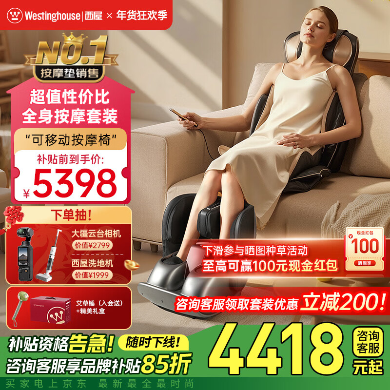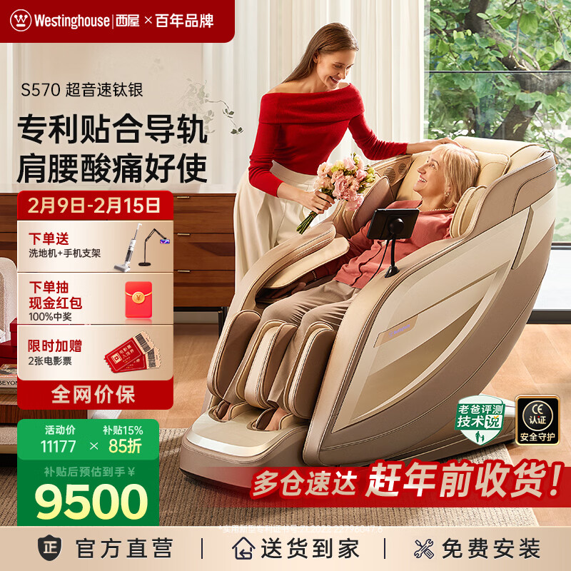 西屋(Westinghouse)S588家用按摩椅全身按摩太空舱全自动肩腰揉捏2025十大品牌智能电动按摩沙发送老人礼物升级款S589 S589超音速钛银【第2代升级,长辈送礼款】