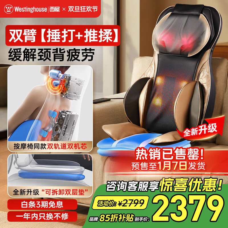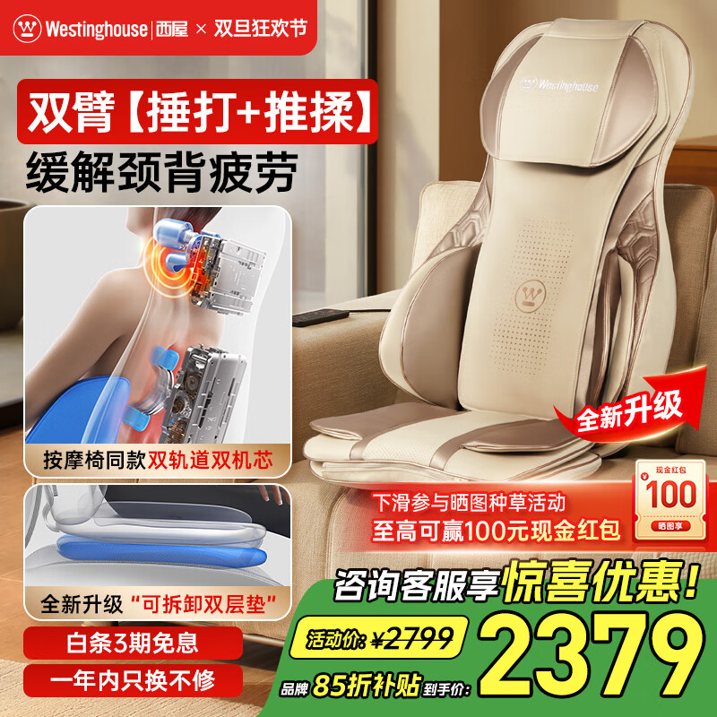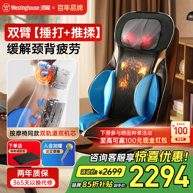 西屋(Westinghouse)分体按摩椅S180/S150按摩靠垫办公室肩颈椎按摩器腰背臀全身按摩家用按摩仪气囊按摩垫长辈送礼 【按摩椅平替套装】下单减200(S180+FR1) 【双轨双臂按摩,泰式揉捶大师】