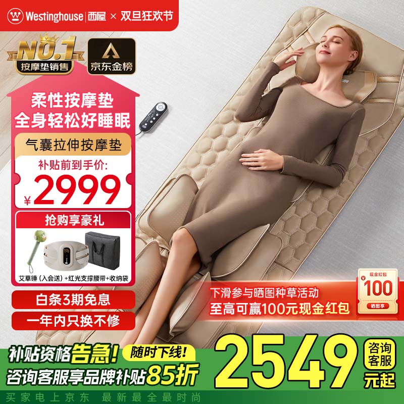 西屋(Westinghouse)S200/S206/S206Pro按摩垫全身拉伸垫躺垫床上折叠按摩椅家用迷你腰部背部按摩床垫爸妈送礼礼物 S206-欧米咖【腰腿气囊可调,高矮胖瘦都能用】 【放松好睡眠】