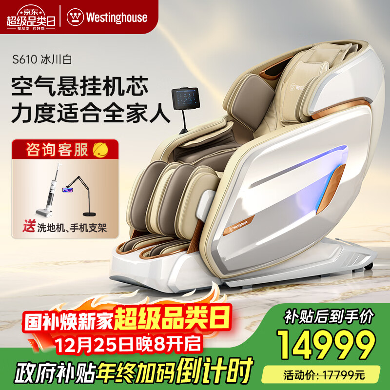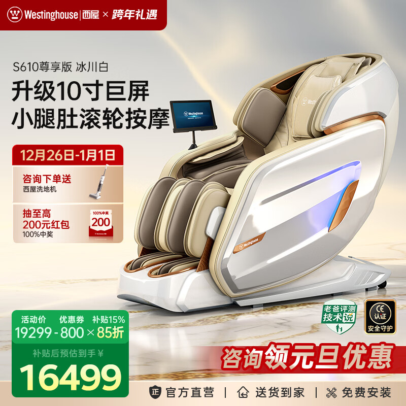 西屋(Westinghouse)【CE认证】S610按摩椅家用太空舱全身按摩全自动按摩椅电动沙发政府补贴送圣诞节礼物 冰川白
