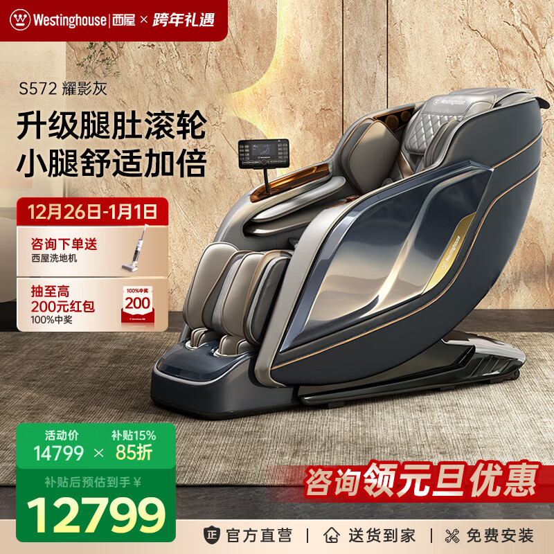 西屋(Westinghouse)S572国家补贴家用按摩椅全身太空舱全自动揉捏肩颈腰背2025十大品牌智能电动沙发S570升级款圣诞礼 曜影灰【三区热敷 操控更省心】