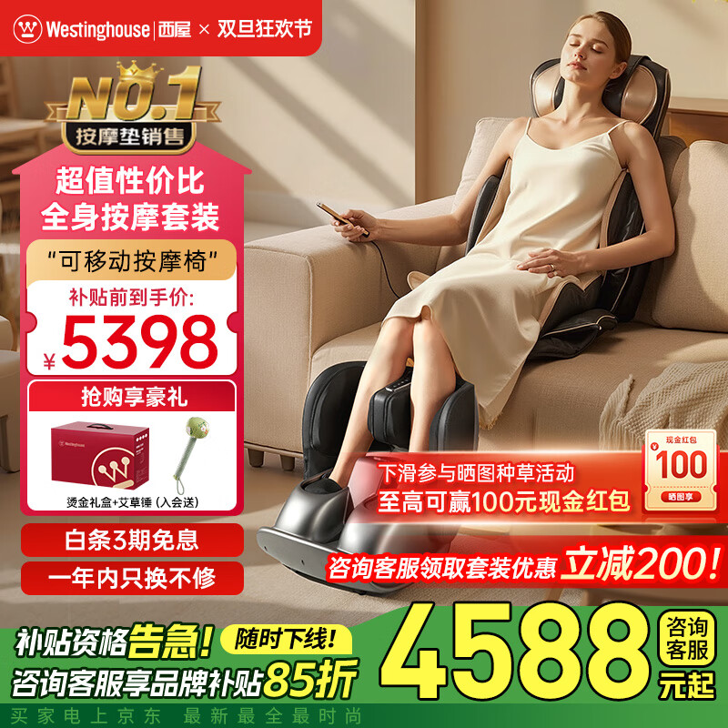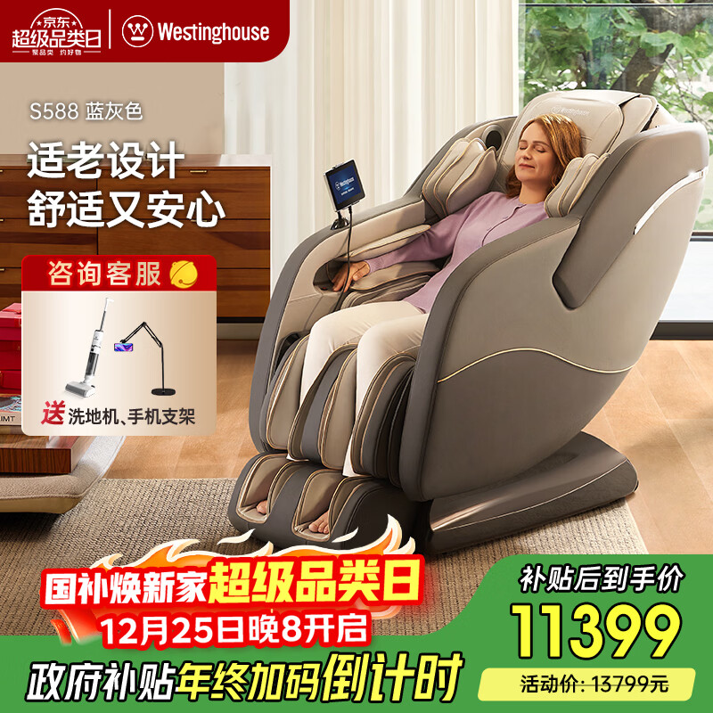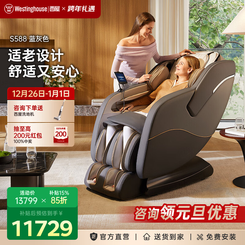 西屋(Westinghouse)S588家用按摩椅全身按摩太空舱全自动揉捏2024十大品牌智能电动老人按摩沙发双膝热敷圣诞节礼物