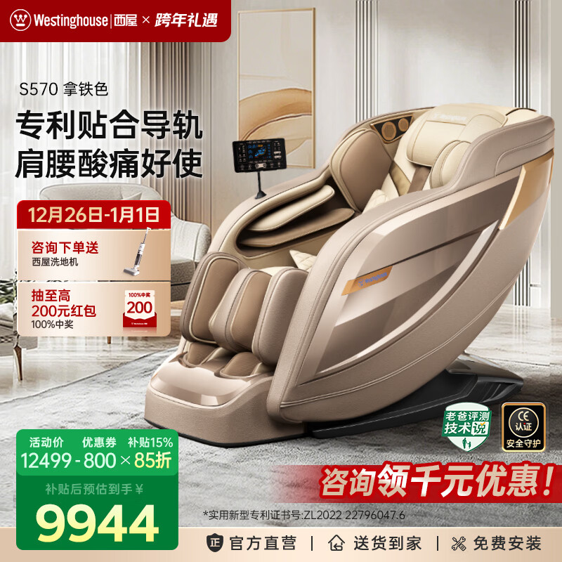 西屋(Westinghouse)【CE认证】 S570家用智能电动按摩椅全身按摩器肩颈腰背揉捏全自动太空舱沙发2025十大按摩椅品牌 拿铁色【新色上市,百搭家居】