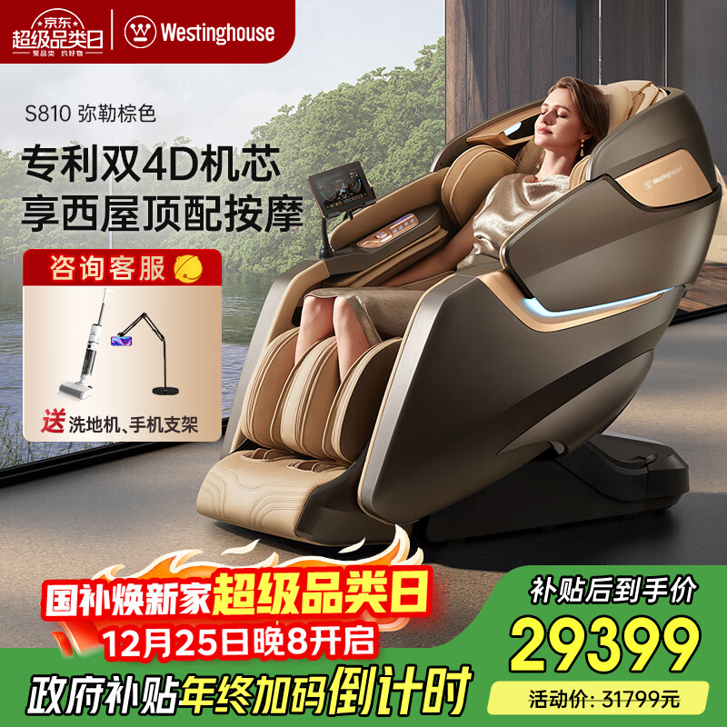 西屋(Westinghouse)S810按摩椅4D家用按摩椅电动全身自动零重力太空舱按摩沙发躺椅高端豪华尊享圣诞节礼物
