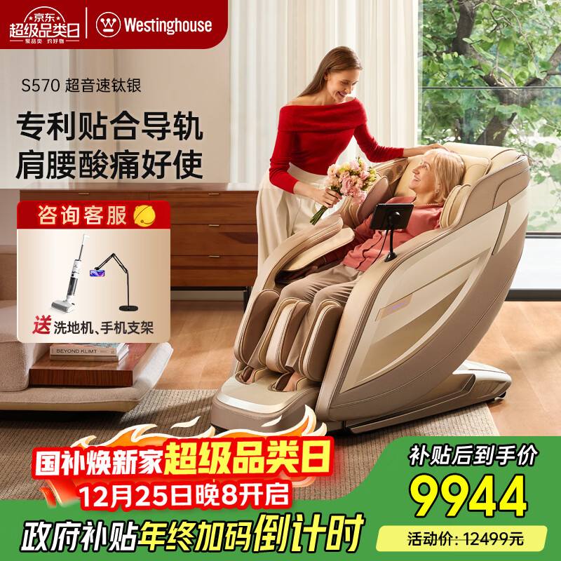 西屋(Westinghouse)【CE认证】S570按摩椅太空舱全身按摩电动按摩椅家用电动沙发政府补贴圣诞节礼物 超音速钛银