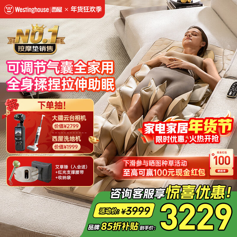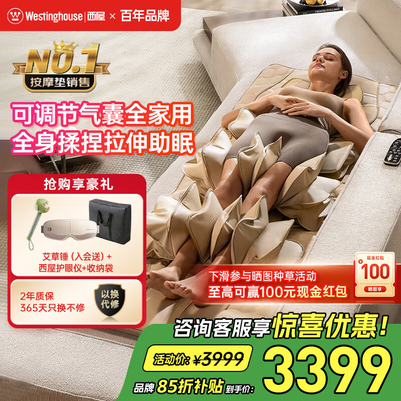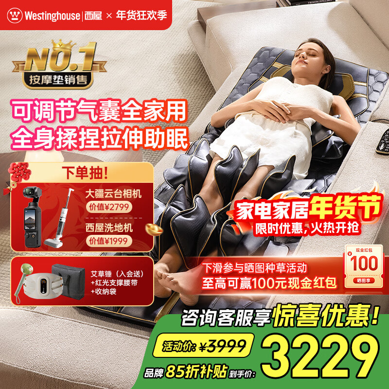 西屋(Westinghouse)S200/S206/S206Pro按摩垫全身拉伸垫躺垫床上折叠按摩椅家用迷你腰背部按摩床垫爸妈送礼物 S206-欧米咖【腰腿气囊可调,高矮胖瘦都能用】 【放松好睡眠】