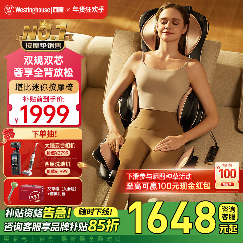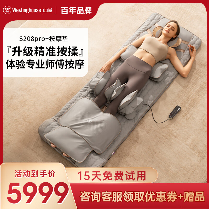 西屋(Westinghouse)S208/208pro/S150按摩垫全身躺垫椅床上折叠按摩椅家用迷你颈椎腰部背部按摩仪送父母亲长辈礼物 S208pro+【升级腰腿振动】