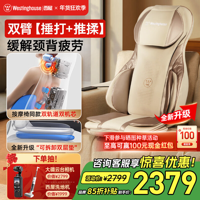 西屋(Westinghouse)分体按摩椅S180/S150按摩靠垫办公室肩颈按摩器腰背臀全身按摩家用按摩仪气囊按摩垫长辈送礼 【双垫提升体验】S180欧米伽-捶背揉肩 【双轨双臂按摩,泰式揉捶大师】