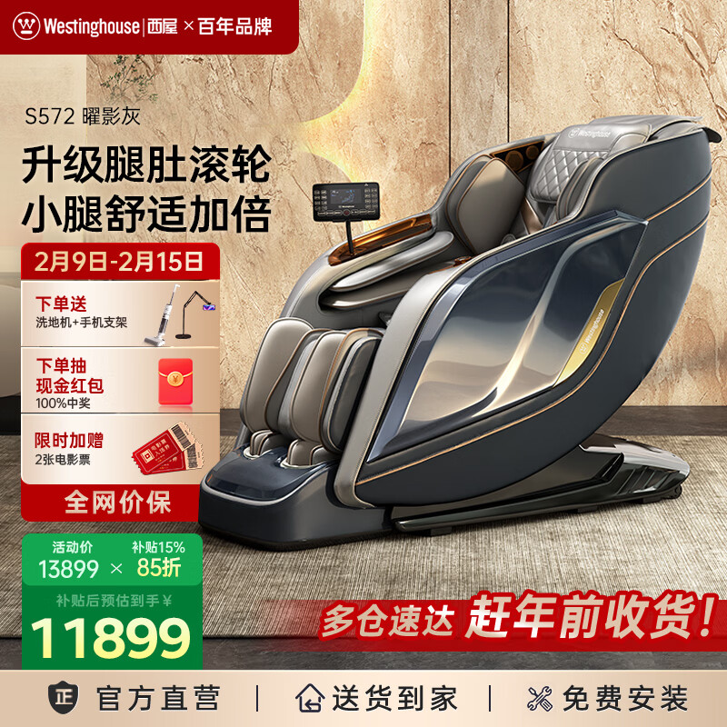 西屋(Westinghouse)S572国家补贴家用按摩椅全身太空舱全自动揉捏肩颈腰背2025十大品牌智能电动沙发S570升级款送老人 曜影灰【三区热敷 操控更省心】