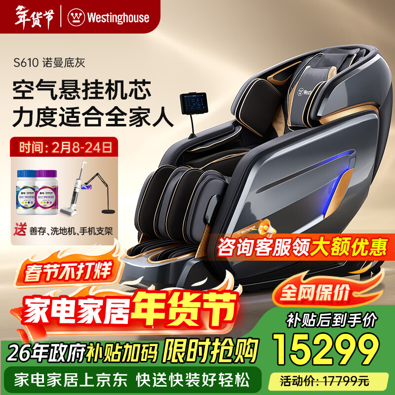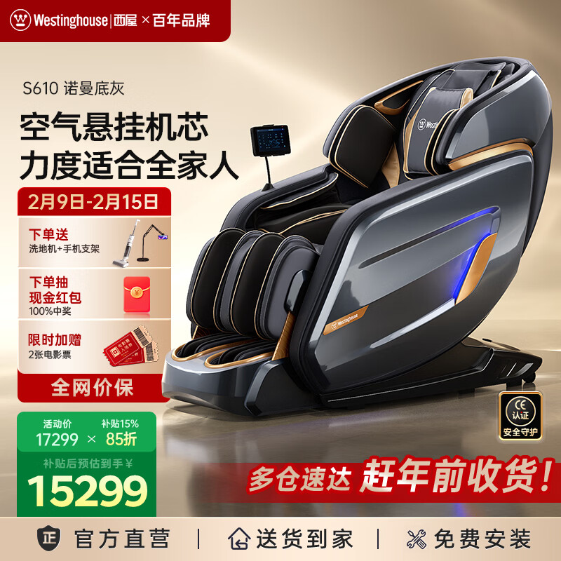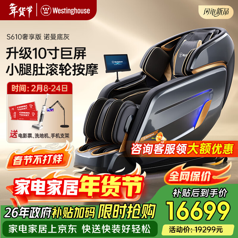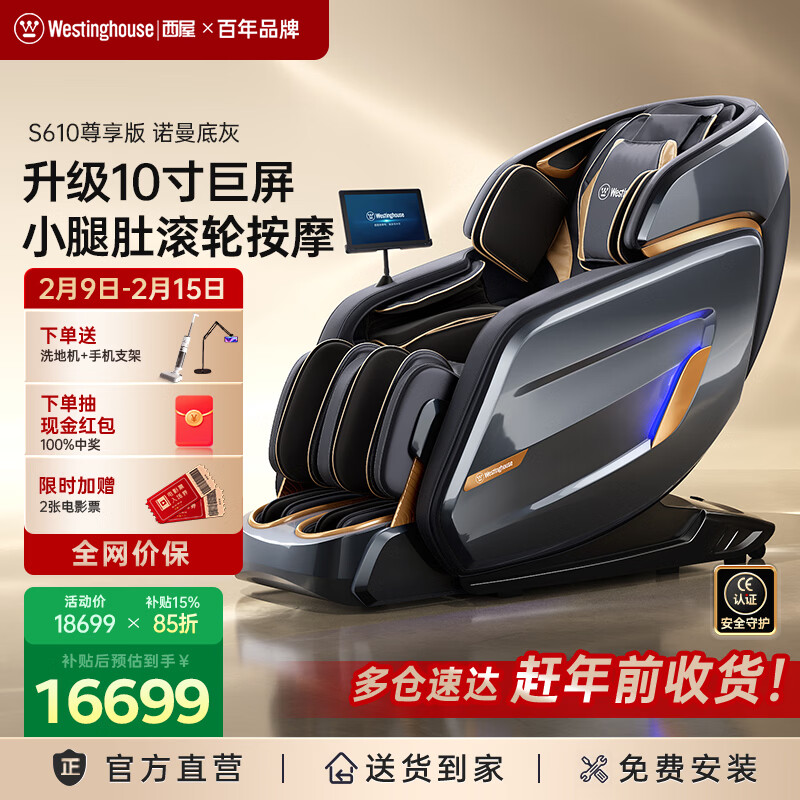 西屋(Westinghouse) S610家用智能电动按摩椅【CE认证】全身揉捏太空舱2025十大按摩椅品牌摇摇椅S620升级款送老人 S610奢享版 诺曼底灰【升级10寸大屏】