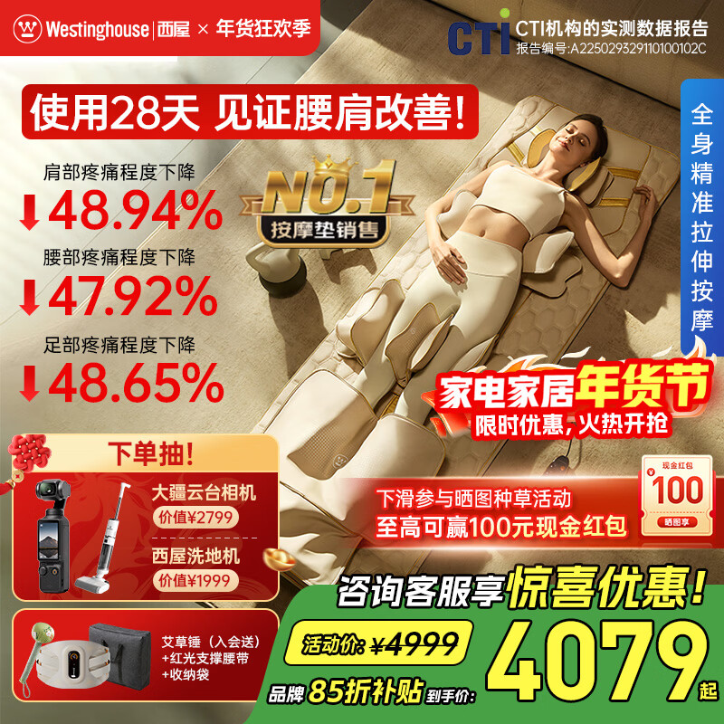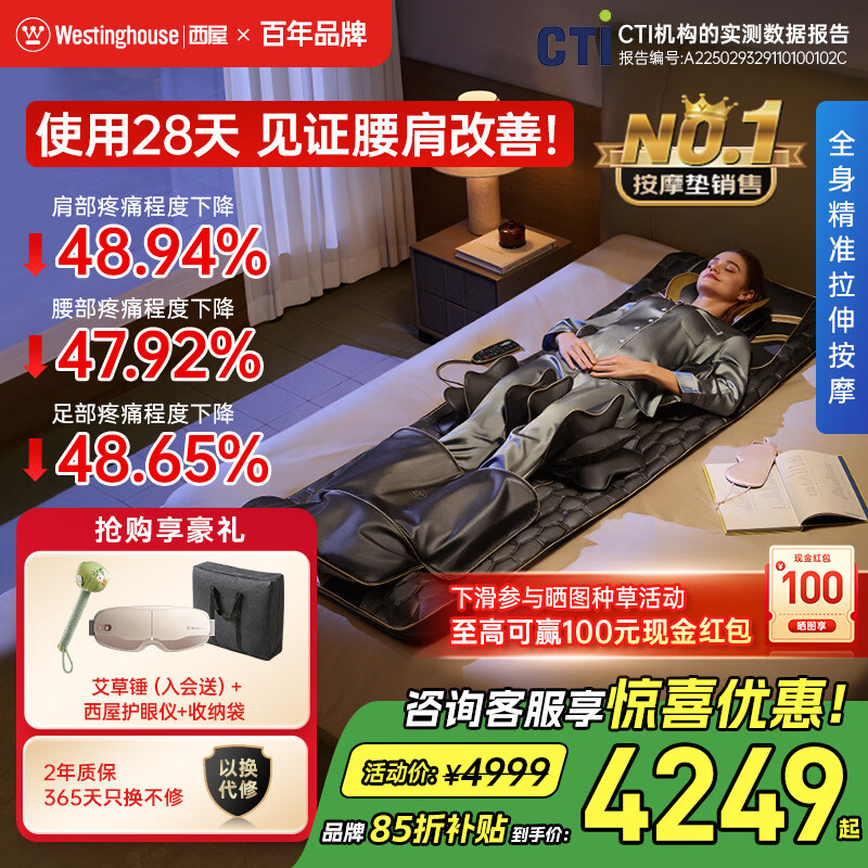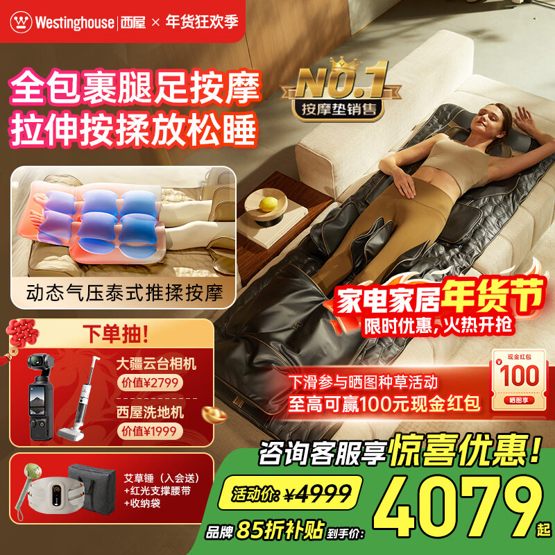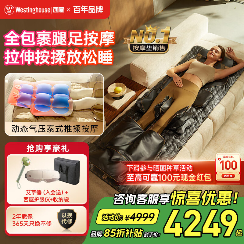 西屋(Westinghouse)S200/S206/S206Pro按摩垫全身拉伸垫躺垫床上折叠按摩椅家用迷你腰背部按摩床垫爸妈送礼物 S206Pro欧米咖【腿足360度包裹按摩】 【放松好睡眠】