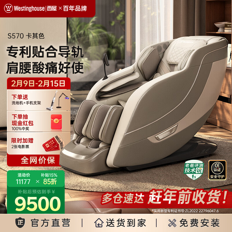西屋(Westinghouse)S570家用智能电动按摩椅【CE认证】 全身按摩器肩颈腰背揉捏全自动太空舱沙发2025十大按摩椅品牌 卡其【全皮款】