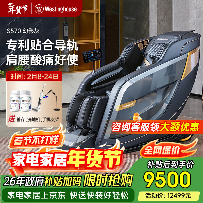 西屋(Westinghouse)S570家用智能电动按摩椅【CE认证】 全身按摩器肩颈腰背揉捏全自动太空舱沙发2025十大按摩椅品牌 幻影灰【全家放松性价比首选】