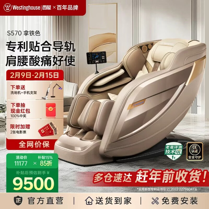 西屋(Westinghouse)S570家用智能电动按摩椅【CE认证】 全身按摩器肩颈腰背揉捏全自动太空舱沙发2025十大按摩椅品牌 拿铁色【新色上市,百搭家居】