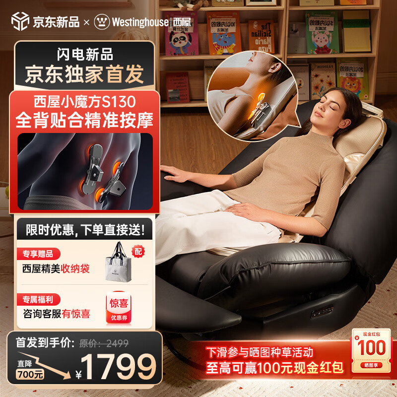 西屋(Westinghouse)小魔方按摩垫S130全身按摩家用沙发躺垫办公靠垫全身按摩可折叠收纳按摩椅双臂推揉按摩长辈送礼 【超级新品】精准按摩揉肩推背-S130 【三折垫收纳 不占空间】