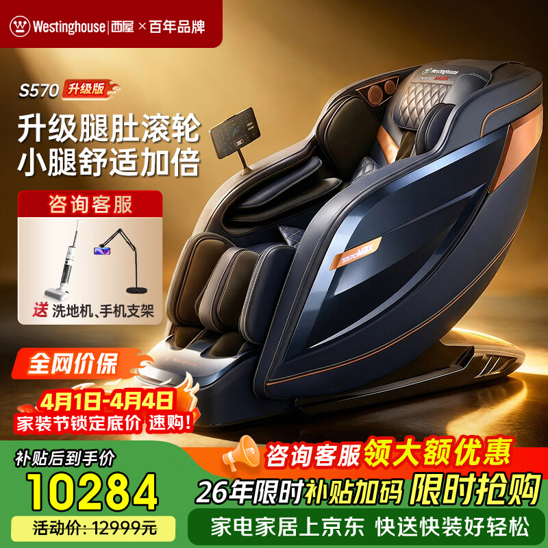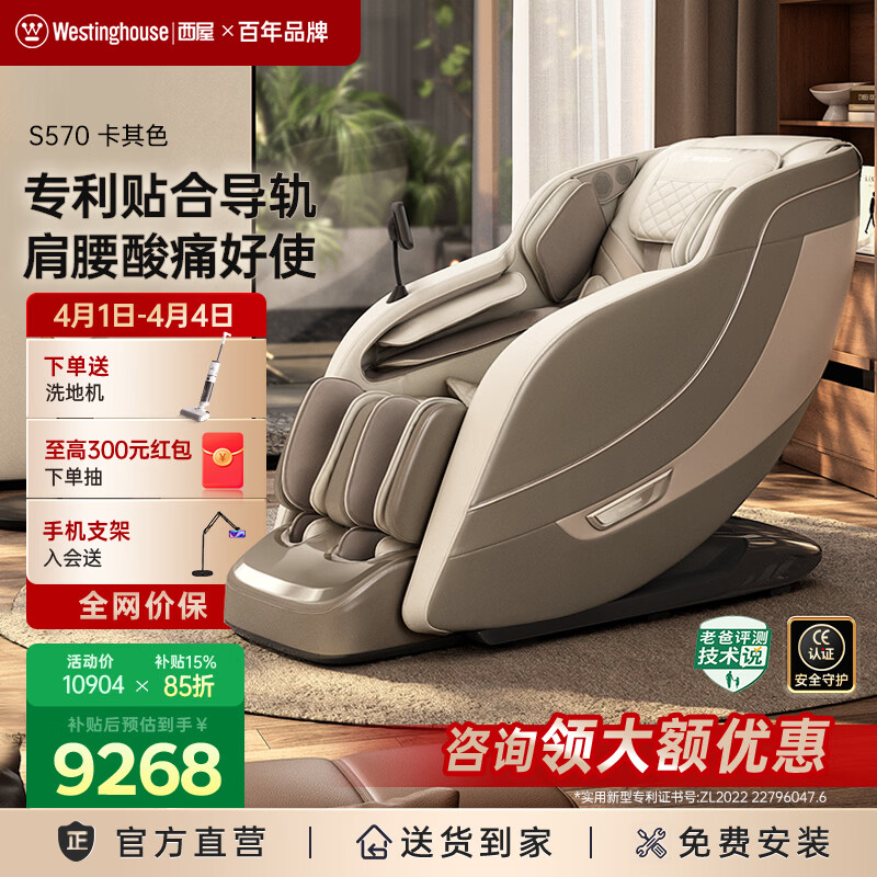 西屋(Westinghouse)S570家用智能电动按摩椅【CE认证】 全身按摩器2026肩颈腰背揉捏全自动太空舱沙发送老人生日礼物 卡其【全皮款】
