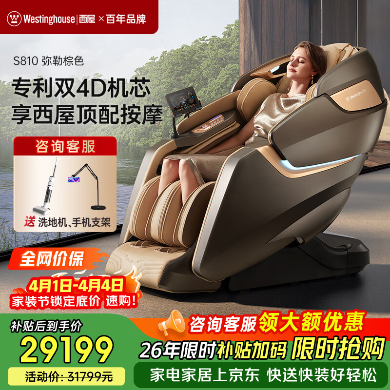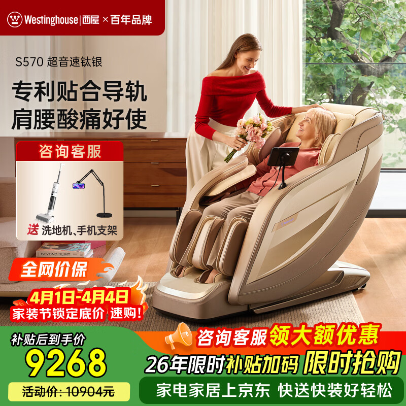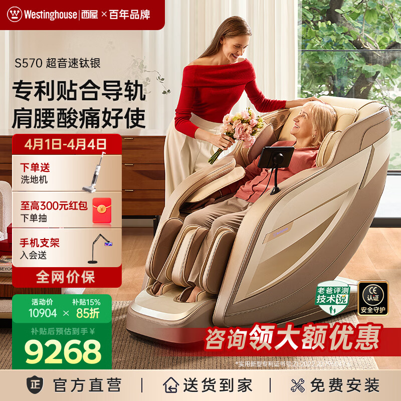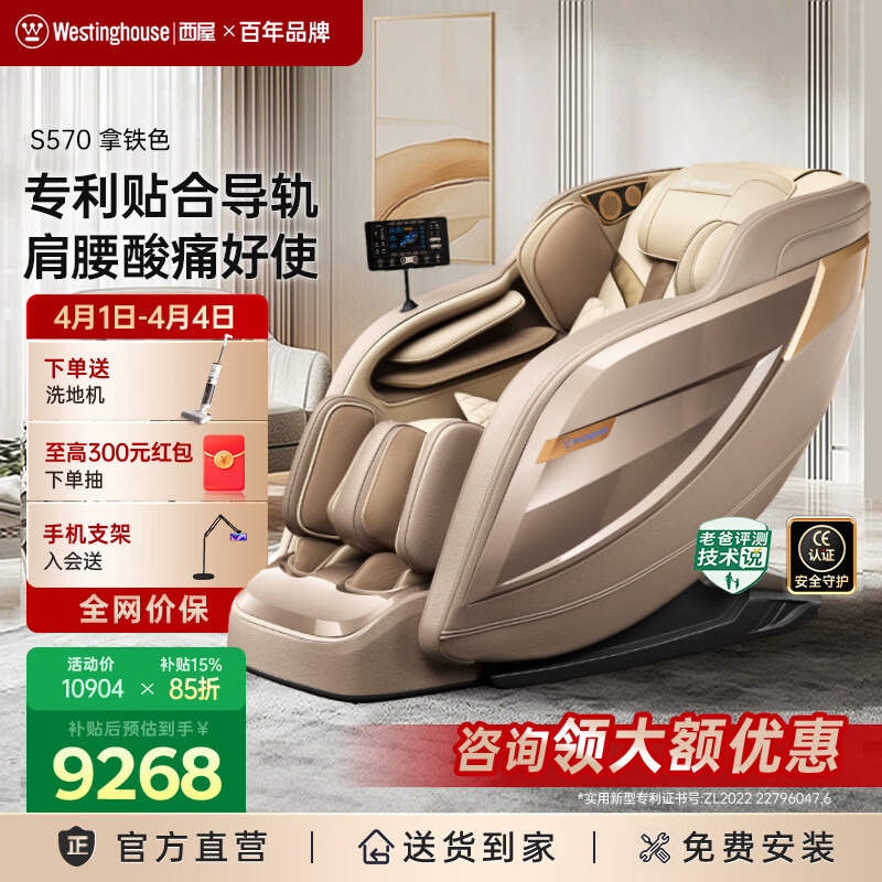 西屋(Westinghouse)S570家用智能电动按摩椅【CE认证】 全身按摩器2026肩颈腰背揉捏全自动太空舱沙发送老人生日礼物 拿铁色【新色上市,百搭家居】