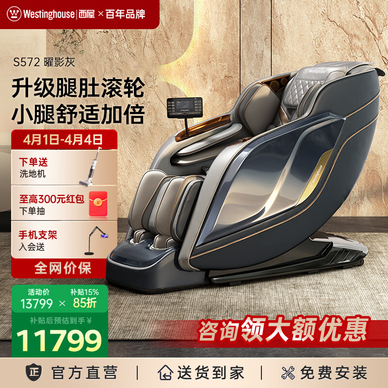 西屋(Westinghouse)S572国家补贴家用按摩椅全身太空舱全自动揉捏肩颈腰背2026智能电动沙发S570升级款送老人生日礼物 曜影灰【三区热敷 操控更省心】