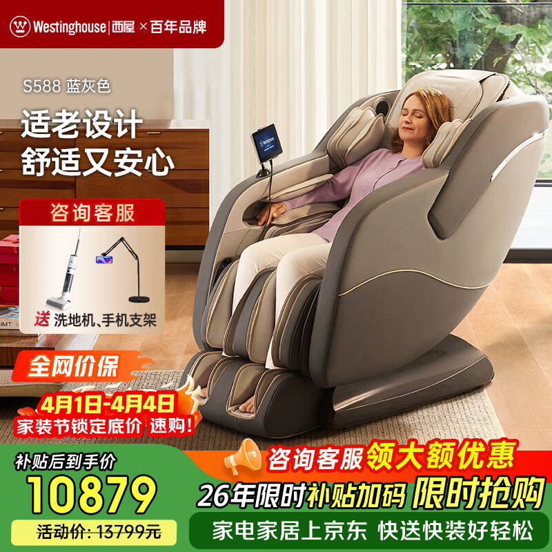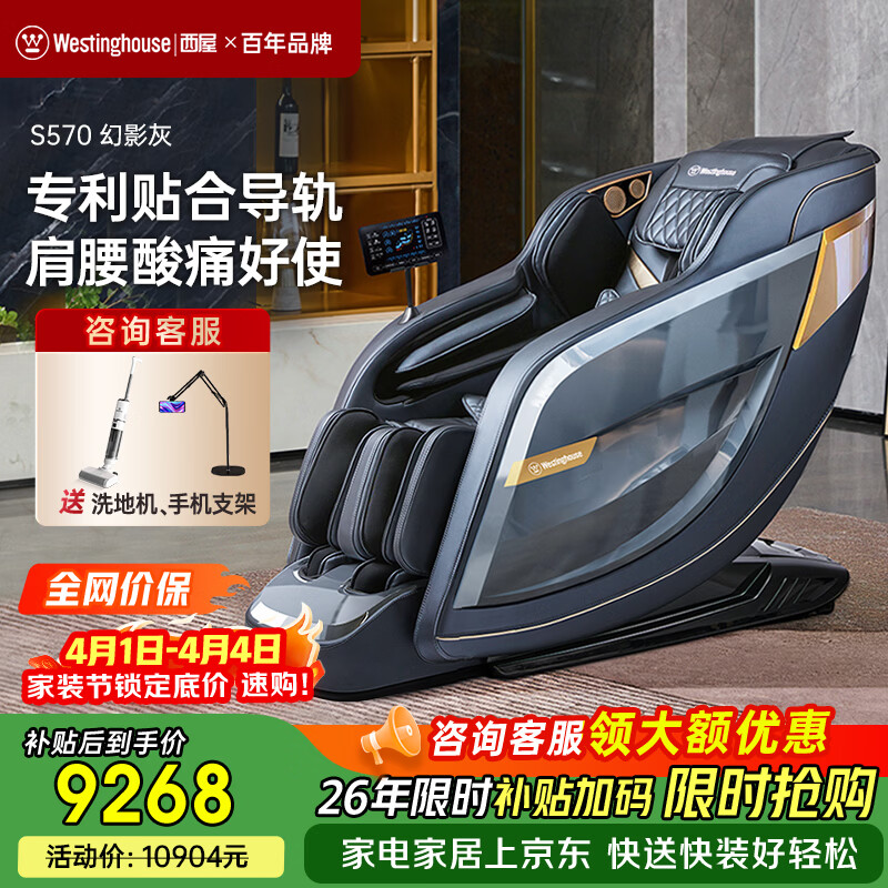 西屋(Westinghouse)S570家用智能电动按摩椅【CE认证】 全身按摩器2026肩颈腰背揉捏全自动太空舱沙发送老人生日礼物 幻影灰【全家放松性价比首选】