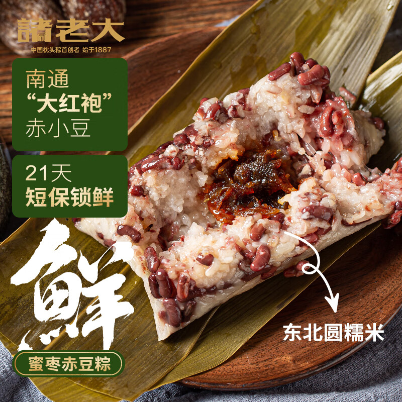 诸老大粽子短保新鲜粽现包 蜜枣赤豆粽130gx8只中华老字号甜粽源头直发