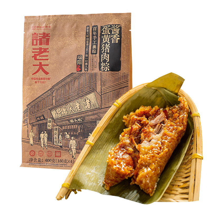 诸老大 粽子中华老字号 蛋黄猪肉粽150g*4只端午节嘉兴产肉粽散粽早餐