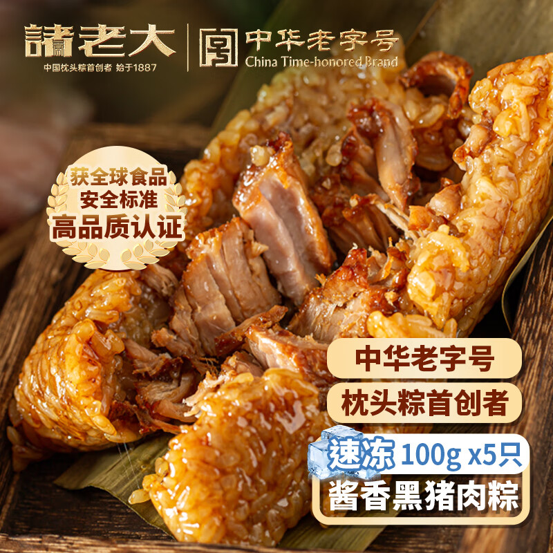 诸老大 精选黑猪肉速冻粽子 100g*5只中华老字号肉粽子湖州特产早餐速食