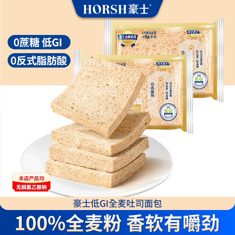 豪士(HAOSHI)低GI全麦吐司面包整箱早餐营养追剧代餐速食办公小零食品 豪士低GI全麦吐司面包600g