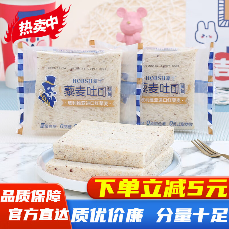 豪士黎麦吐司面包0蔗糖高蛋白质无边吐司宿舍囤货早餐粗粮休闲代餐 豪士藜麦吐司面包 500g