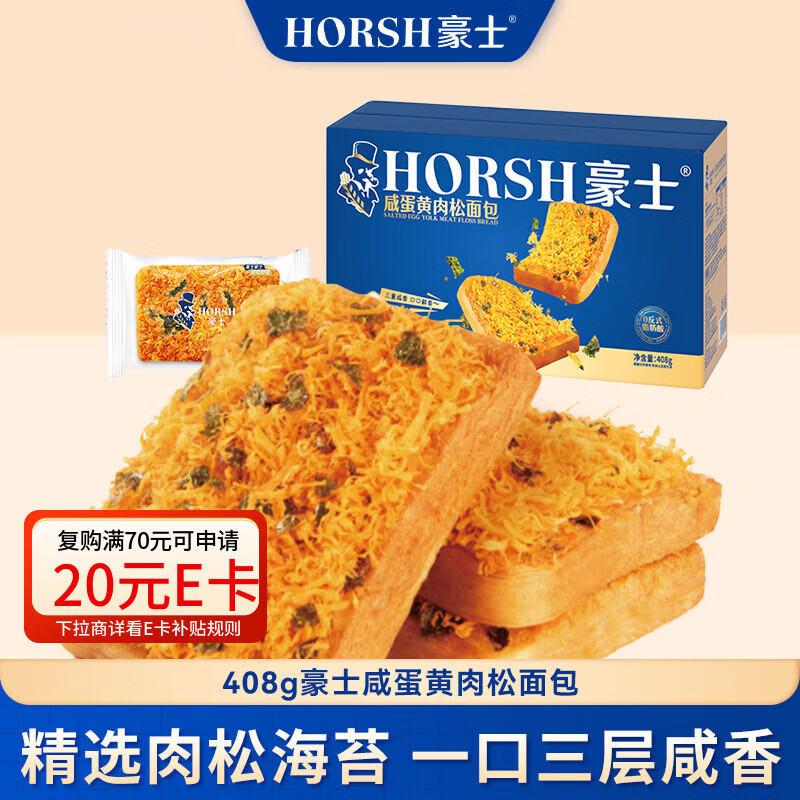 豪士面包咸蛋黄肉松三明治408g早餐吐司面包零食办公室休闲年货节礼盒