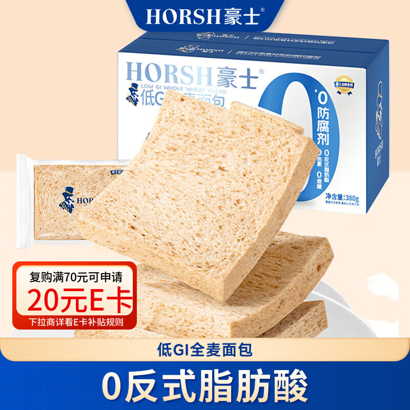 豪士低GI全麦吐司面包整箱代餐糕点早餐速食点心小零食 豪士低GI全麦吐司面包380g