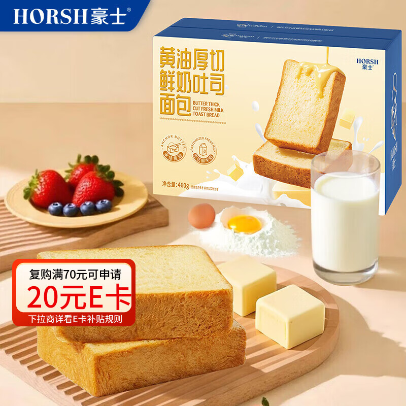 豪士(HAOSHI)新品黄油厚切鲜奶吐司面包糕点点心早餐整箱代餐零食 黄油厚切鲜奶吐司面包460g