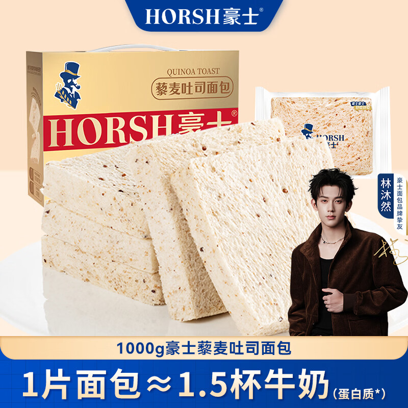 豪士(HAOSHI)藜麦吐司面包早餐吐司整箱营养手撕代餐休闲零食品糕点年货礼盒 【约540g】藜麦整箱+乳酸菌5包