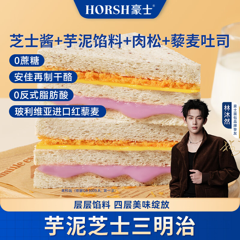 豪士面包芋泥三明治360g 早餐芝士夹心肉松面包早饭休闲办公室休闲