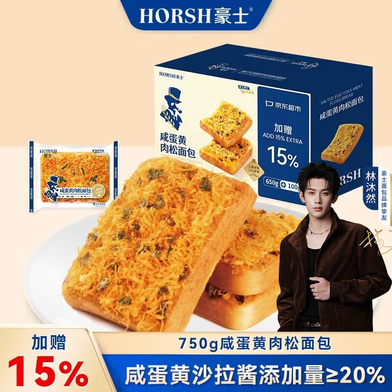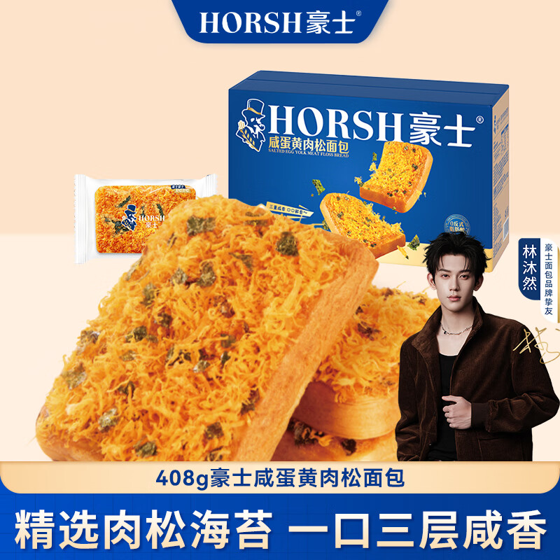 豪士(HAOSHI)咸蛋黄肉松豪士面包早餐学生面包代餐蛋糕点速食休闲零食整箱礼盒 豪士咸蛋黄肉松408g/箱