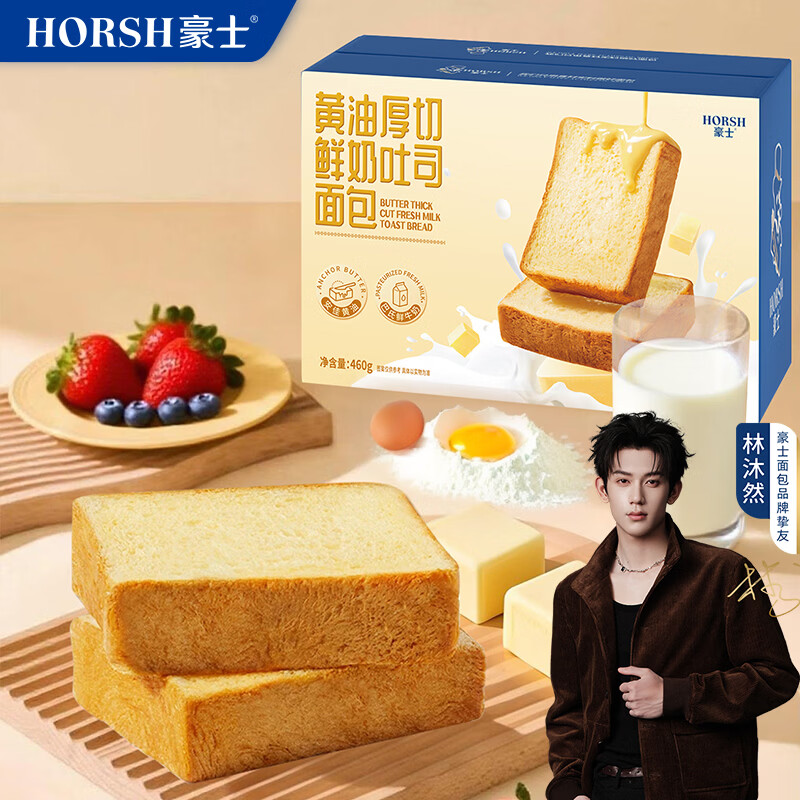 豪士黄油鲜奶厚切吐司面包460g 早餐面包代餐健康零食办公室休闲