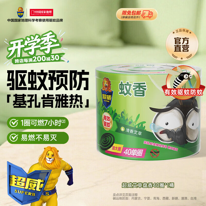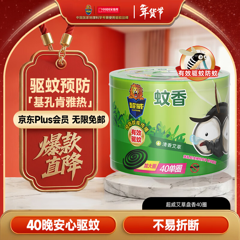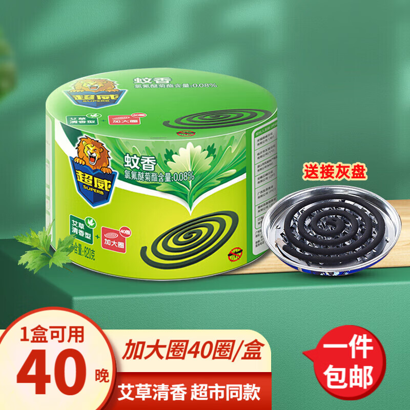 超威蚊香盘40圈*1盒基孔肯雅热户外微烟蚊香防蚊驱蚊灭蚊盘香艾草清香