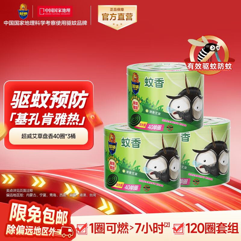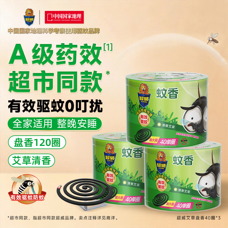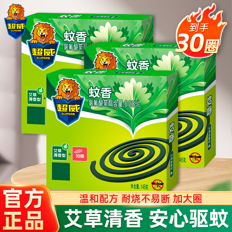 超威蚊香盘40圈*3盒基孔肯雅热户外微烟蚊香防蚊驱蚊灭蚊盘香艾草清香