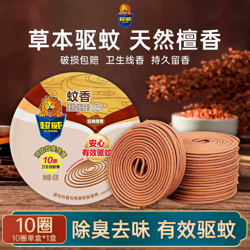 超威(SUPERB)蚊香盘香驱蚊家用蚊香卧室室内长效驱蚊 艾草清香型 10圈 1盒