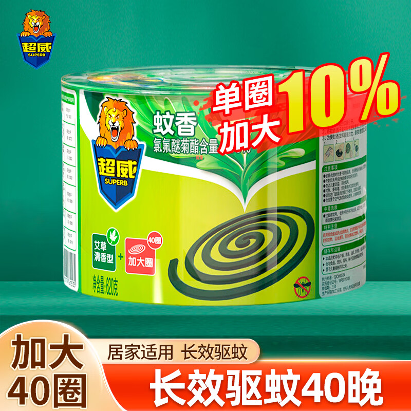 超威(SUPERB)蚊香盘香驱蚊家用蚊香卧室室内长效驱蚊 艾草清香型 40圈 1桶